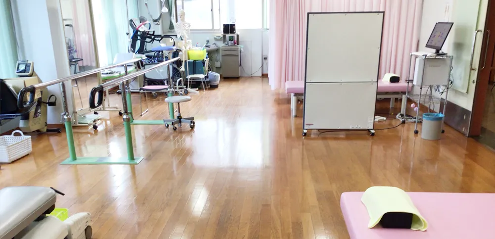 理学療法は主に病気、けがによって運動機能が低下した状態にある方に対し、運動療法(関節の治療、筋力強化)や物理療法(温熱、電気刺激等の物理的手段)などを用いて、治療をして、寝返る、起き上がる、立つ、歩くなどの基本的な動作能力の改善を図ります。外来では肩関節周囲炎、腰痛、「膝が痛い」、「近ごろ歩きづらくなった」等、様々な疾患の治療を行っております。
