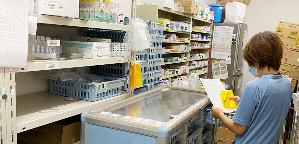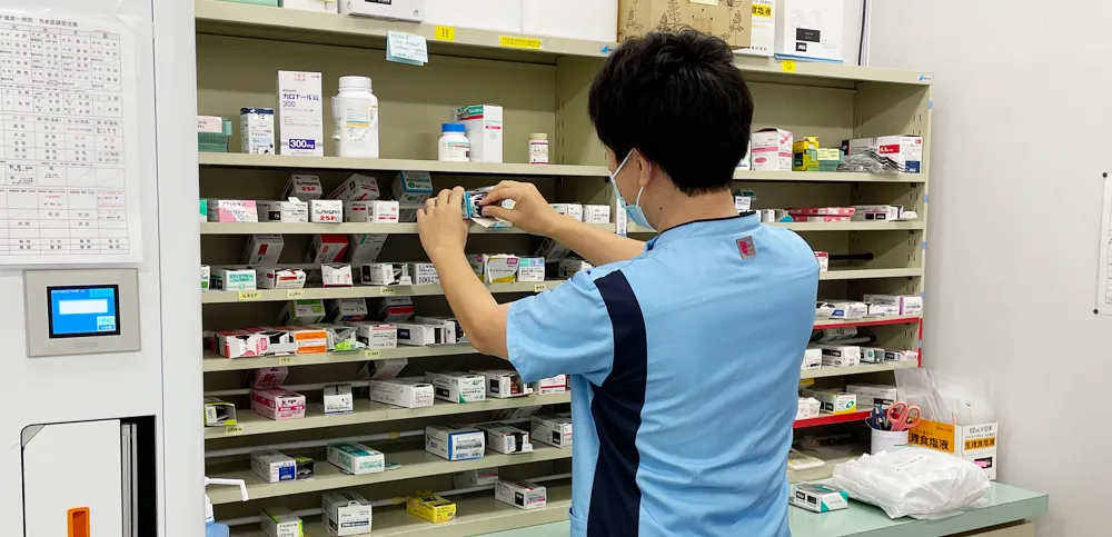医薬品の品質と数量管理を行います。患者さまに安心して使用していただけるよう、薬の使用期限や品質に影響を及ぼす温度・湿度・光などに注意して管理を行っています。